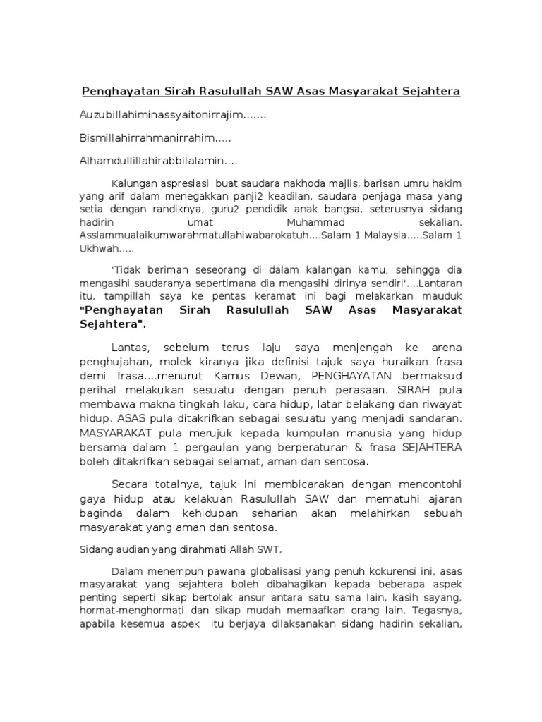 Teks Syarahan Agama from imgv2-1-f.scribdassets.com Ini adalah contoh syarahan yang pernah di berikan kepada saya. Biasanya ceramah tersebut dilakukan oleh ustad dan ustadzah yang sudah menguasai ilmu agama islam. Contoh teks ceramah lucu bahasa sunda yang berhubungan dengan agama islam, dan dapat digunakan untuk dakwah seputar pernikahan. Contoh teks naskah pidato singkat yang baik dan benar. Nah, dalam artikel kali ini saya akan menjelaskan mengenai beberapa contoh teks eksplanasi yang bisa membantu anda untuk mempelajari atau mendalami. Contoh teks syarahan mtq mp3 & mp4. Contoh teks ceramah agama islam tentang sedekah. Tanpa kejujuran agama tidak lengkap, akhlak tidak sempurna,dan seorang manusia tidak sempurna menjadi manusia.